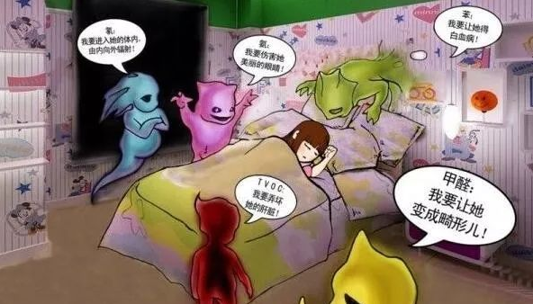 4、當(dāng)室內(nèi)空氣中甲醛含量為0.1毫克/立方米時,就有異味和不適感;達(dá)到0.5毫克/立方米時,可刺眼睛,引起流淚;